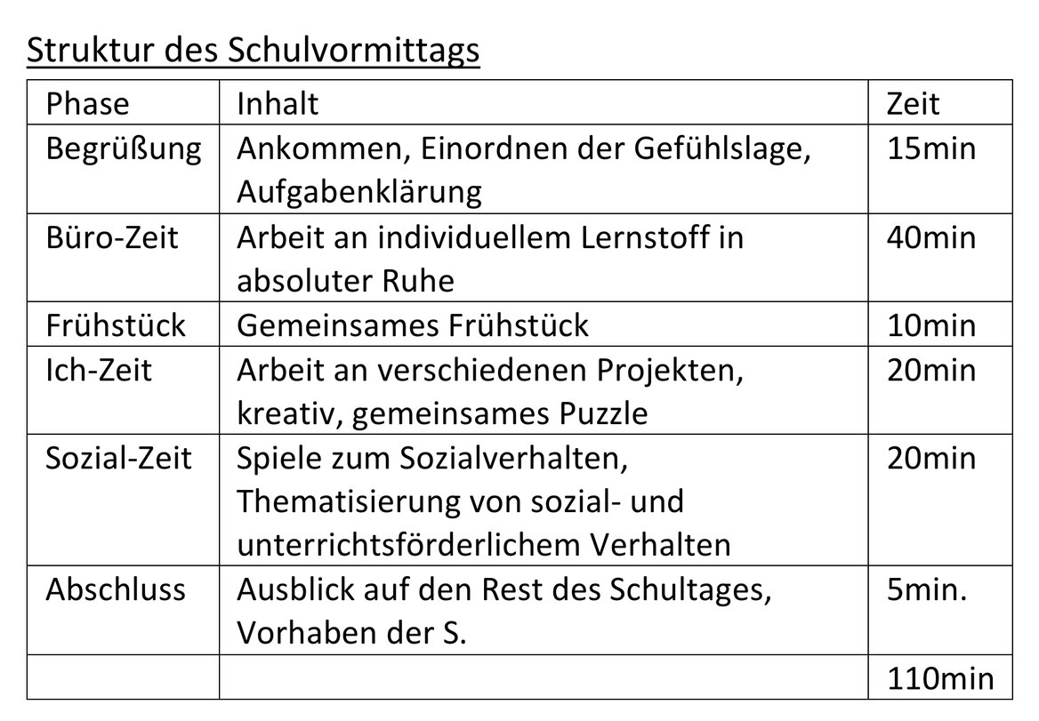 - Positive Entscheidung im Team und im Fürsorgeteam; freier Beschulungsplatz (max.8)