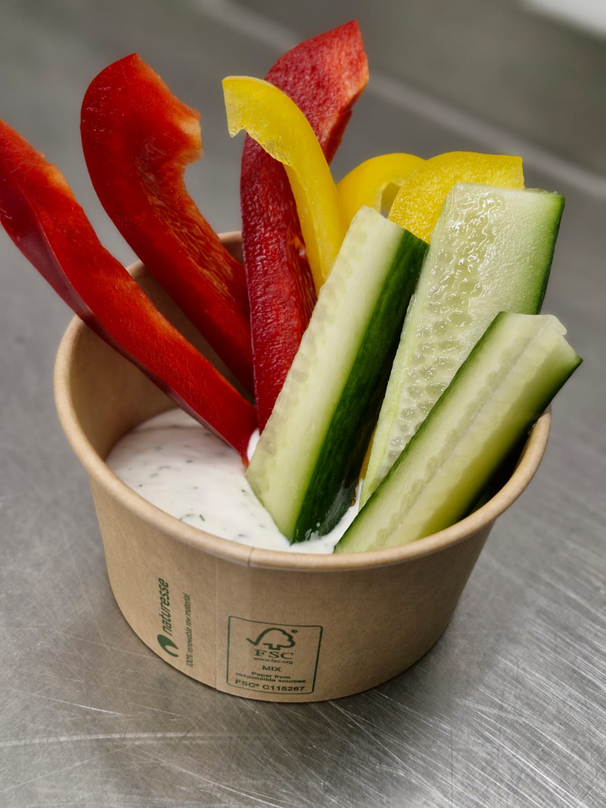 Nachtisch in Form von Joghurt oder Pudding wird im Wechsel zwei, bzw. drei Mal in der Woche angeboten. Zudem haben die Verpflegungsteilnehmer täglich freien Zugang zu einer Auswahl an frischem Obst- und Salat.