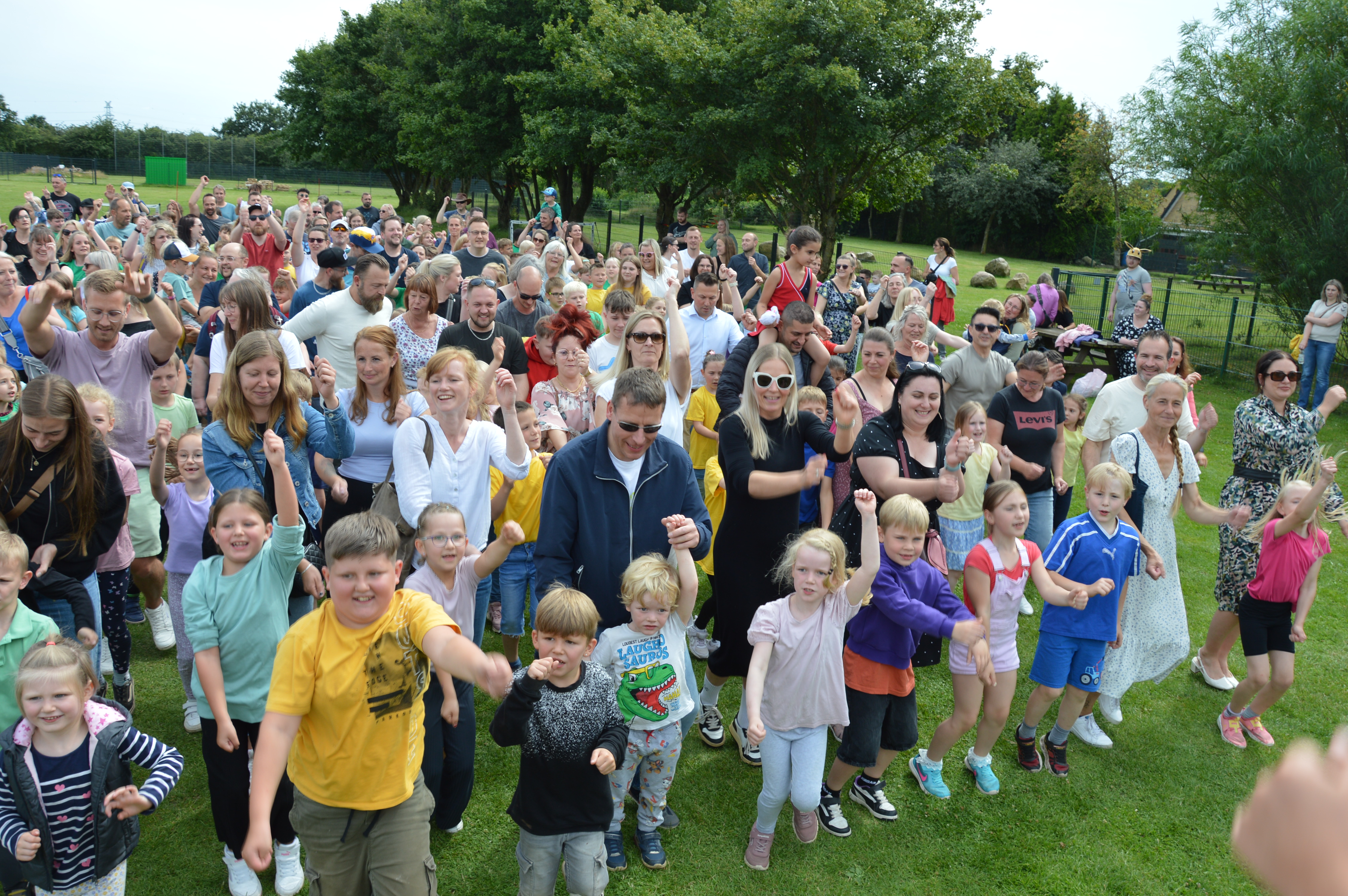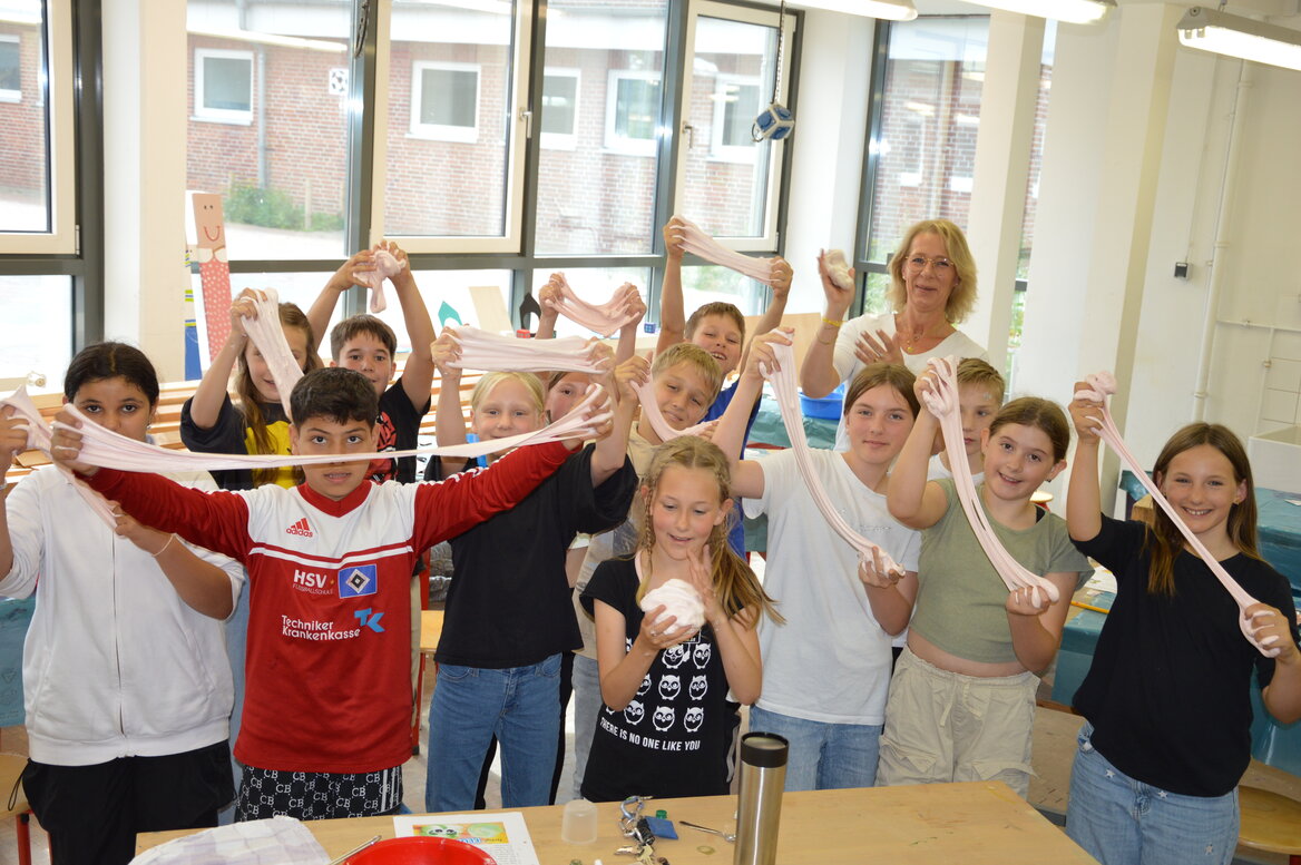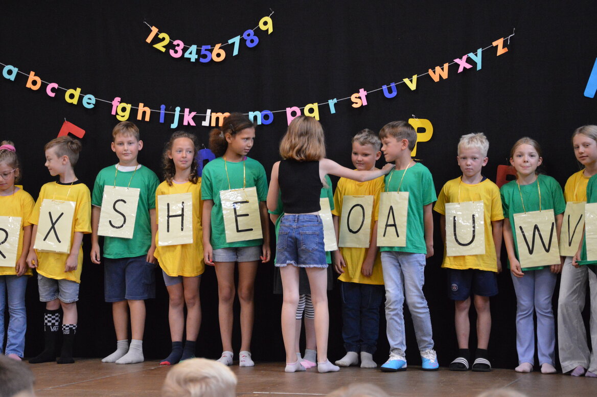 Einen tollen, fröhlichen und bewegten Vor- und Nachmittag verbrachten am 12. Juli alle Schülerinnen und Schüler der Grundschule Weding (SLS Handewitt). Der Unterricht fand an diesem Tag in klassenübergreifenden Lese-Hör-Projektgruppen statt. Es wurde vorgelesen, gebastelt, gemalt, gebacken und gespielt. Am Nachmittag eröffneten die Grundschulkinder das Spielefest mit einem bunten Tanz, an dem am Schluss auch Eltern, Freunde und Geschwister-kinder teilnahmen- auch durch Weding hallte es nun: „ Nach rechts… nach links…“!