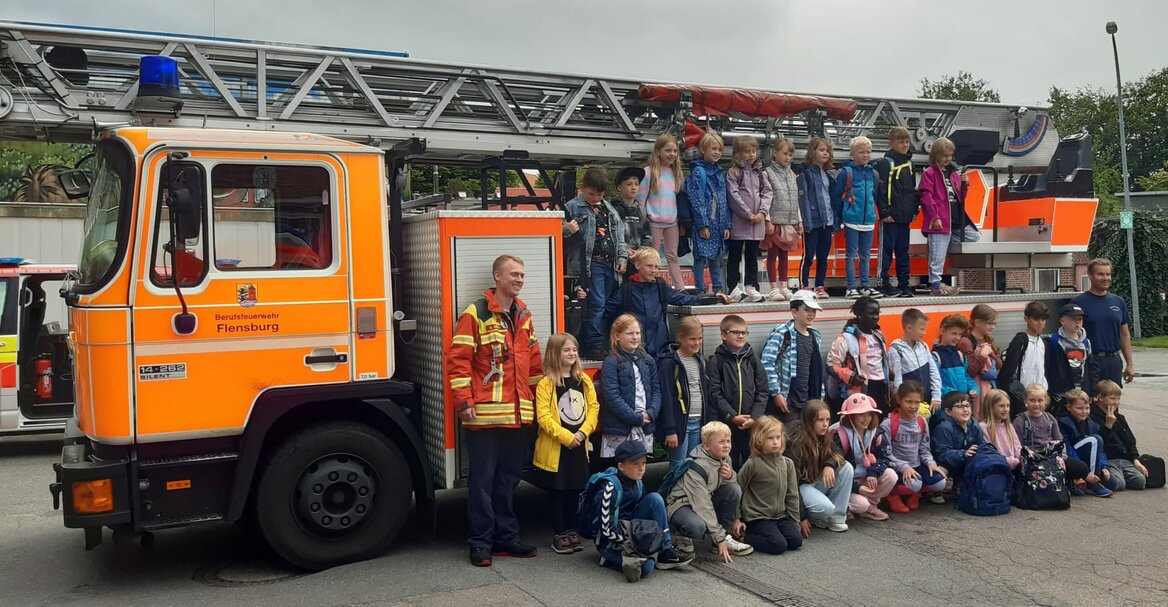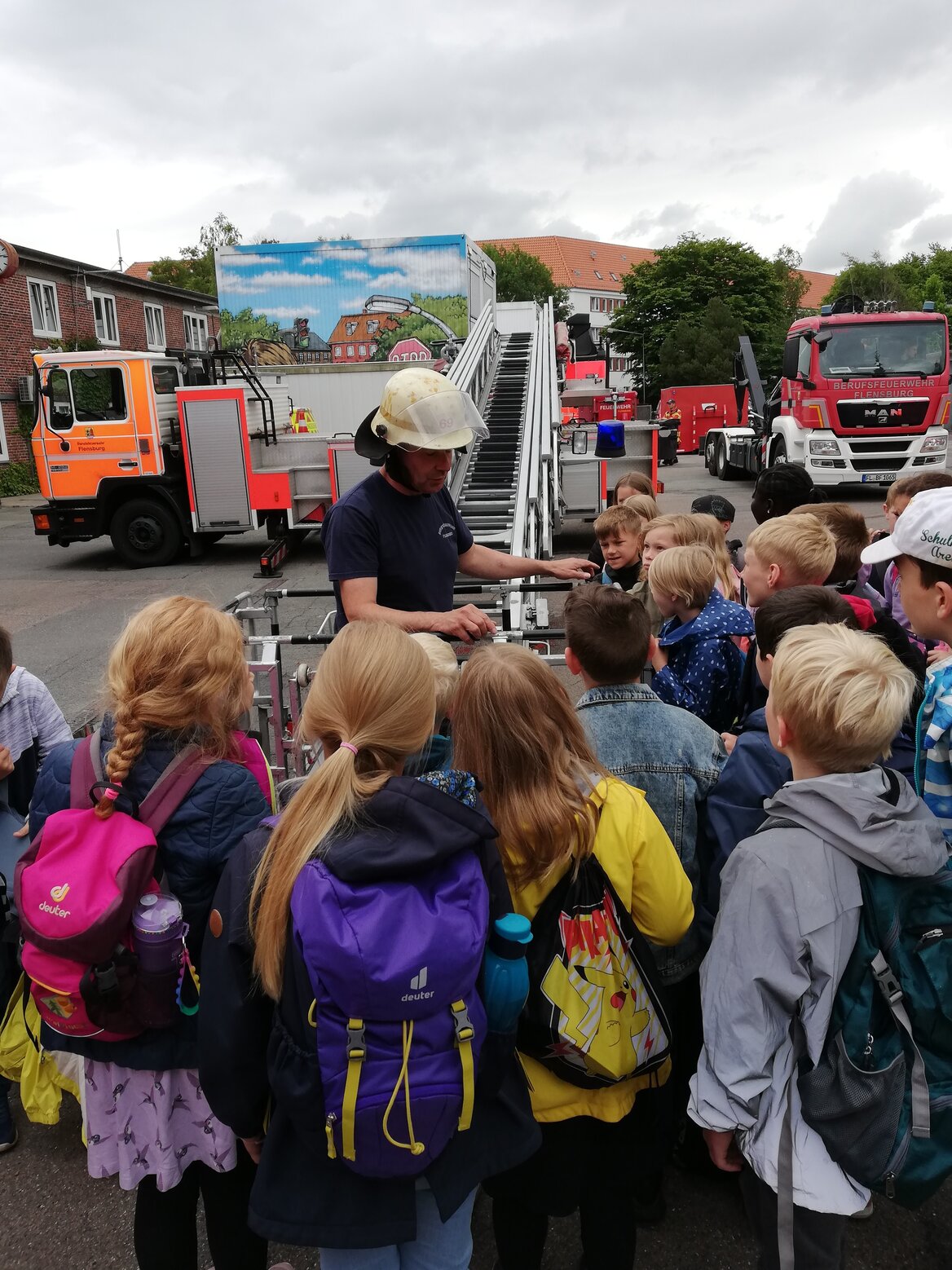 Am 01.07. waren die Klassen 2a und 2b zu Gast bei der Berufsfeuerwehr in Flensburg. Nach einer Unterrichtseinheit in der Schule zum Thema konnte nun endlich praktisch erlebt, angefasst und ausprobiert werden und dies alles unter Anleitung echter Feuerwehrmänner!