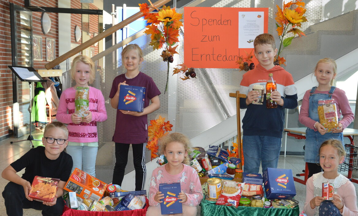 Am 04.10.24 trafen sich alle Schulklassen des Grundschulstandortes Weding zum gemeinsamen Singen in der Pausenhalle. Anlass war das Erntedankfest am darauffolgenden Sonntag.