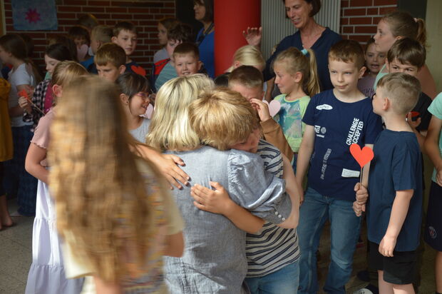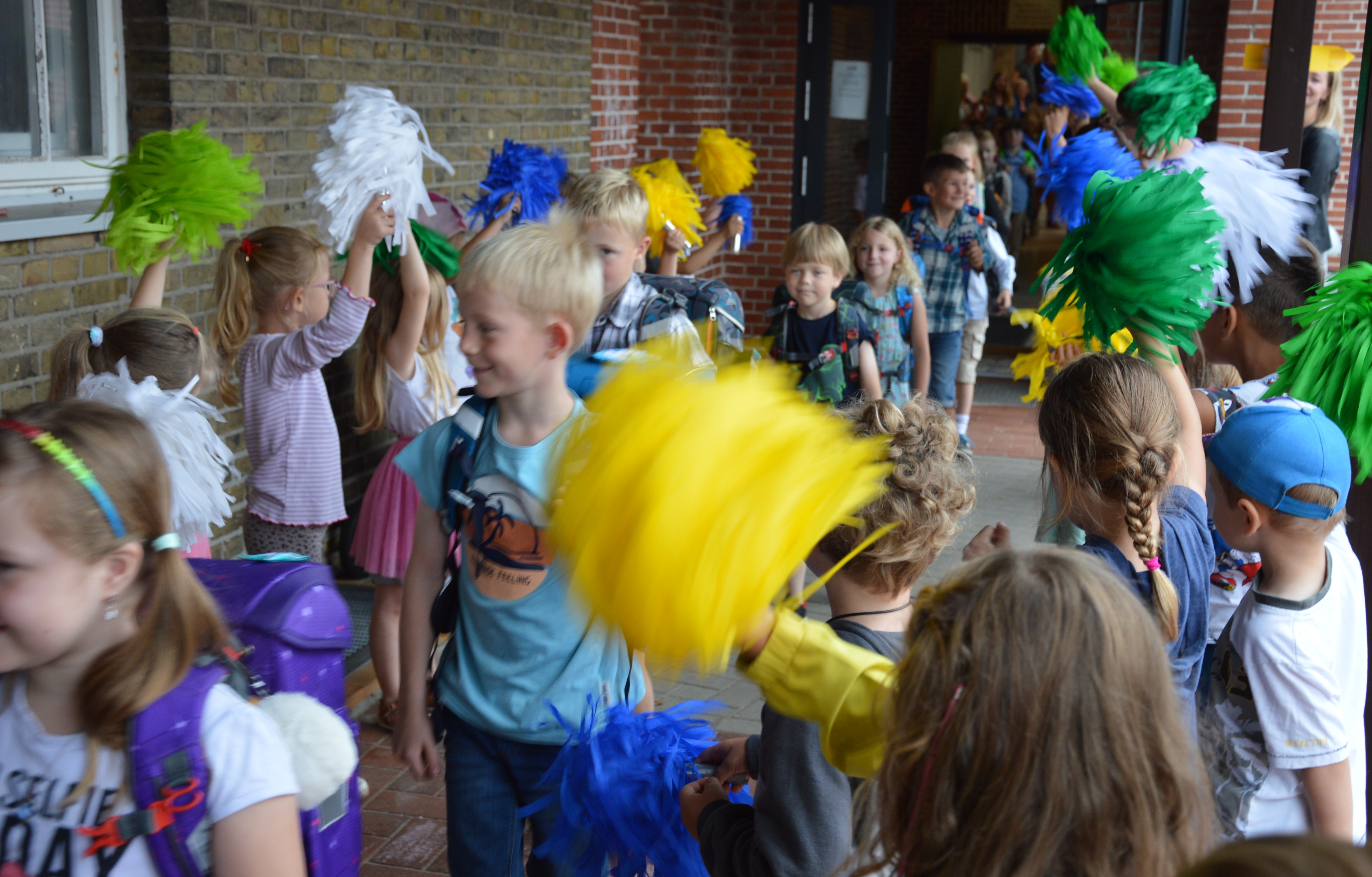 Unter großem Applaus startete die Klasse 1a nach der Feier zur ersten Unterrichtsstunde in den Klassenraum.
