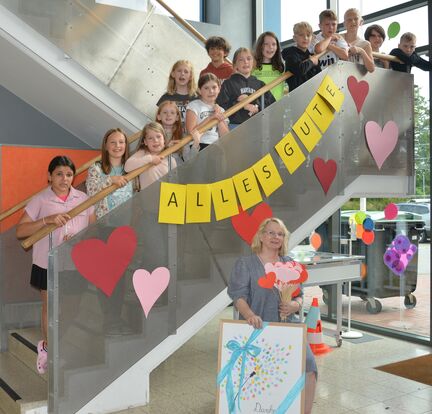 Am letzten Schultag hat die Schulgemeinschaft Weding Frau Doris Sprenger in den wohlverdienten Ruhestand verabschiedet. Mit viel Herz, Gesang, Fröhlichkeit aber auch Wehmut haben alle „Dankeschön“ gesagt! Wir wünschen Frau Sprenger von Herzen alles Gute, bedanken uns für 20 Jahre Weding voller Einsatz, Empathie, Kollegialität und Gespür für die Schülerinnen und Schüler- als Lehrerin Frau Sprenger lassen wir sie nur ungern ziehen- als Privatperson schicken wir sie mit Freude in die nächste Lebensphase!