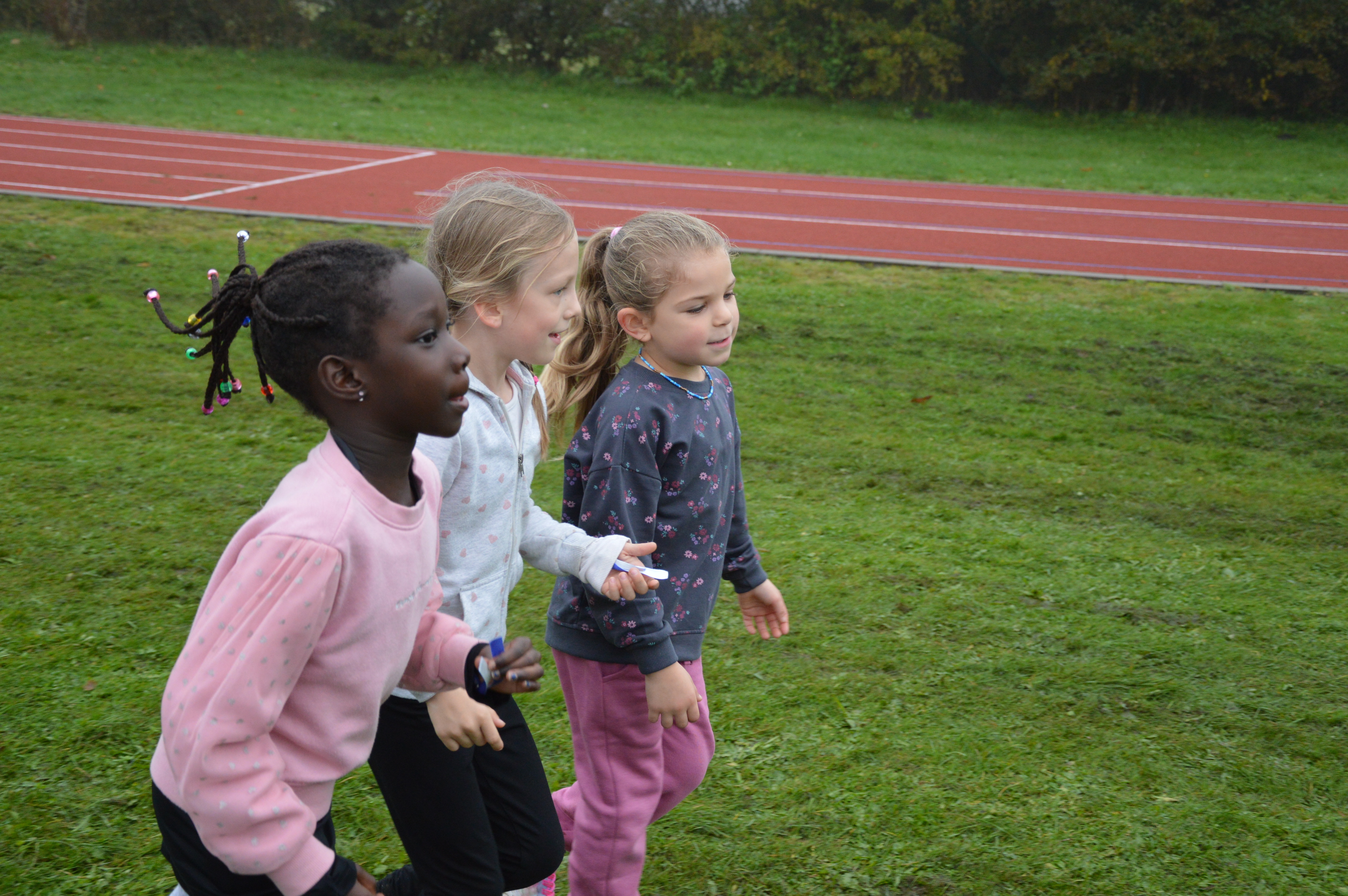 Motiviert drehten die Kinder der Klassen 1-4 unermüdlich ihre Runden- unterstützt durch zahlreiche Elternhelfer an den Klassentischen und auf den Laufrunden. Mit zunehmendem Sonnenschein winkte dann nach 60 Minuten 93 der Gestarteten das Laufabzeichen in Gold – ein toller Start in die verdienten Herbstferien.