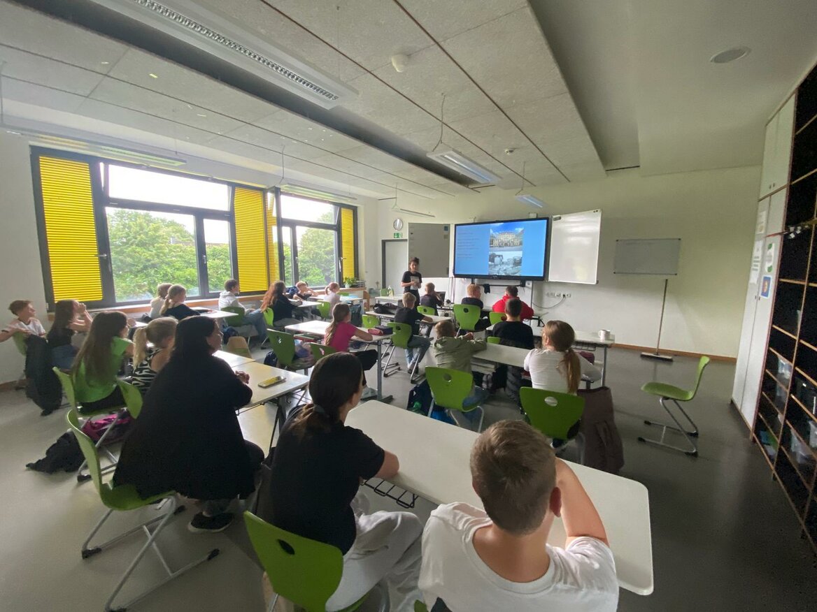 Vor den Sommerferien war die Archäologin Dr. Karina Iwe zu Besuch im 5. Jahrgang. Die Prähistorikerin kam extra aus Dresden, um den Schülerinnen und Schüler Einblicke in ihre Arbeit zu geben. Am Beispiel von Ausgrabungen in Armenien und Kasachstan konnten die Schülerinnen und Schüler erfahren, was es bedeutet als Archäologin zu arbeiten, wie früh ihre Arbeit beginnt, das Maurerspachtel/Pinsel die wichtigsten Arbeitswerkzeuge sind und dass Goldfunde eher zur Ausnahme ihrer Arbeit gehören.