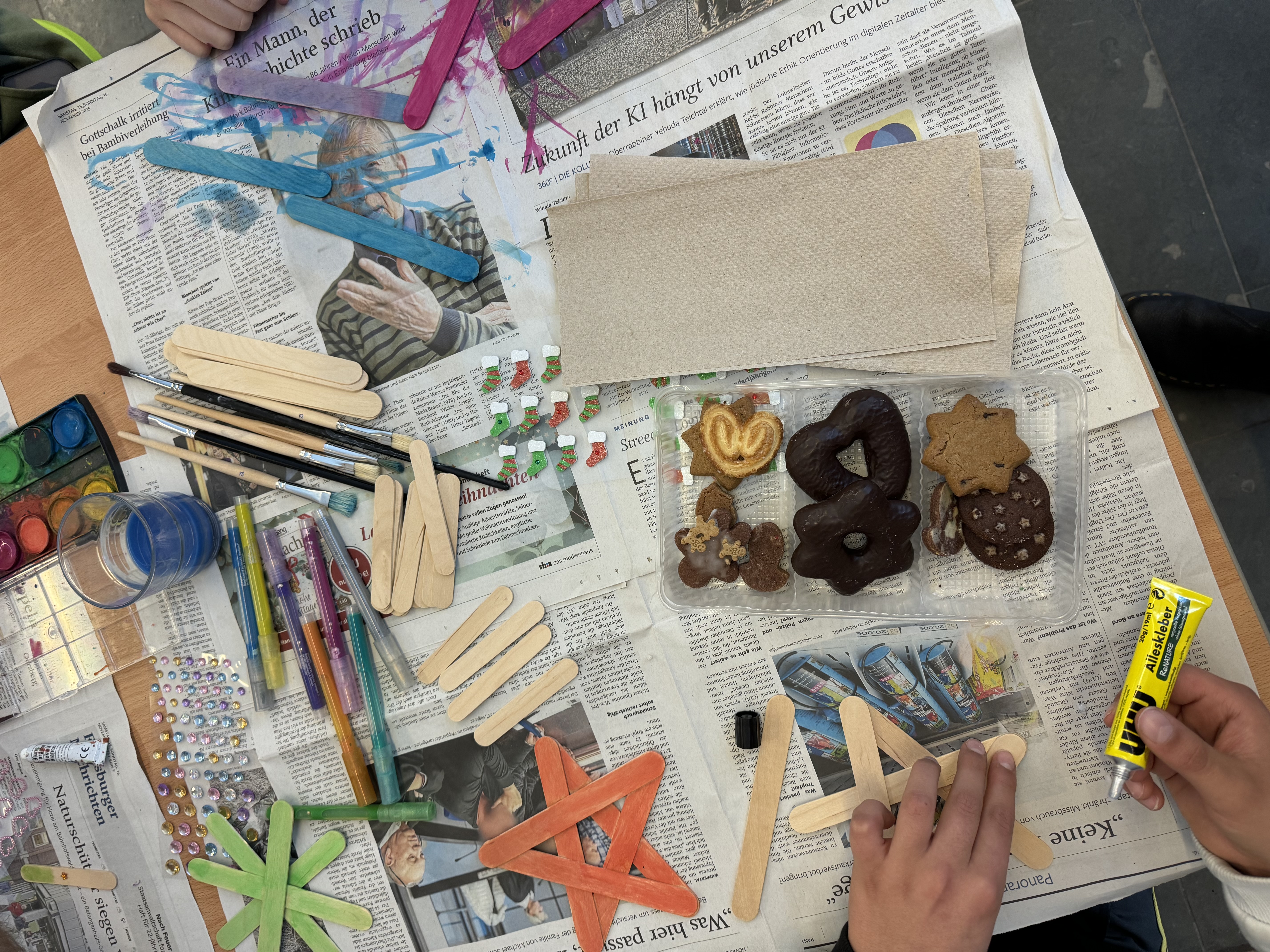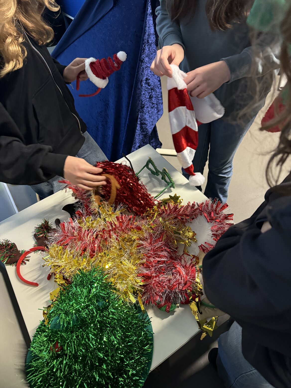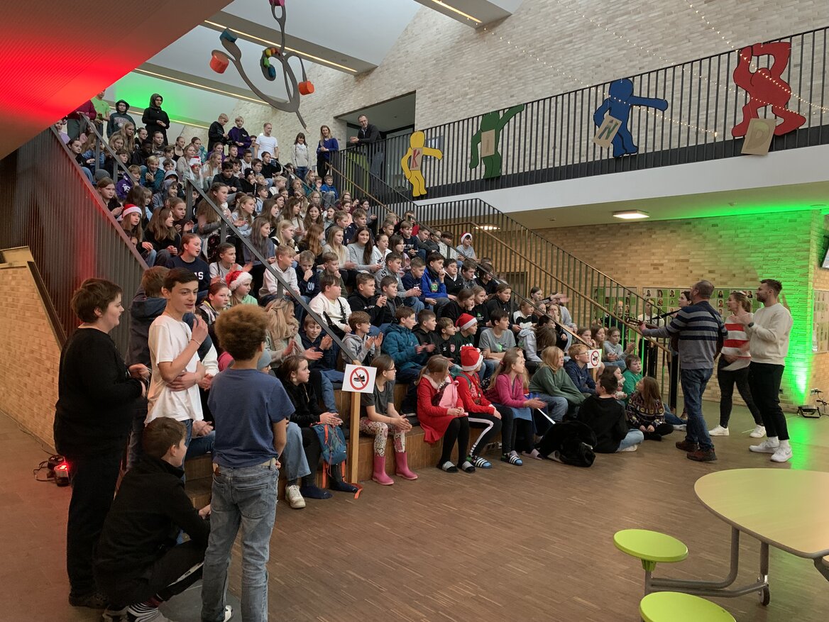 In diesem Jahr fand unser Weihnachtsbasteln für die Jahrgänge 5 bis 7 in ganz neuer Form statt. Statt eines festen Programms konnten die Schülerinnen und Schüler frei aus verschiedenen kreativen Aktionen wählen: Neben abwechslungsreichen Bastelangeboten lockten eine fröhliche Fotoaktion und stimmungsvolles Karaokesingen. Auch sportlich ging es zu – mehrere weihnachtliche Bewegungsangebote sorgten für viel Spaß und Energie. Wer es gemütlicher mochte, war im liebevoll eingerichteten Weihnachtscafé genau richtig und konnte dort bei leckeren Keksen eine Pause einlegen.